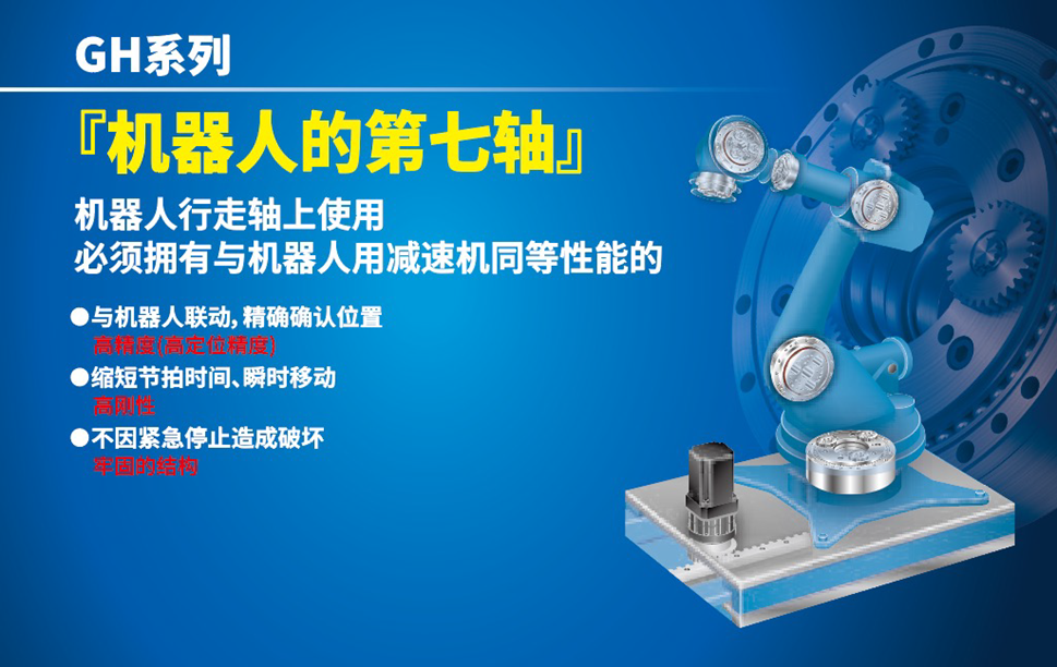 GH系列产品能够完美解决机器人行走轴的刚性以及精度问题。为了直接支持较大的载荷,GH系列内部装有大型角接触球轴承。它采用双支撑支持机构和针轮机构,即使施加高达额定转矩7倍的转矩时,产品也不会损坏。具有刚性高,齿隙小,转矩密度大等特点,能以低减速比实现高速输出,大大提高设备工作效率。