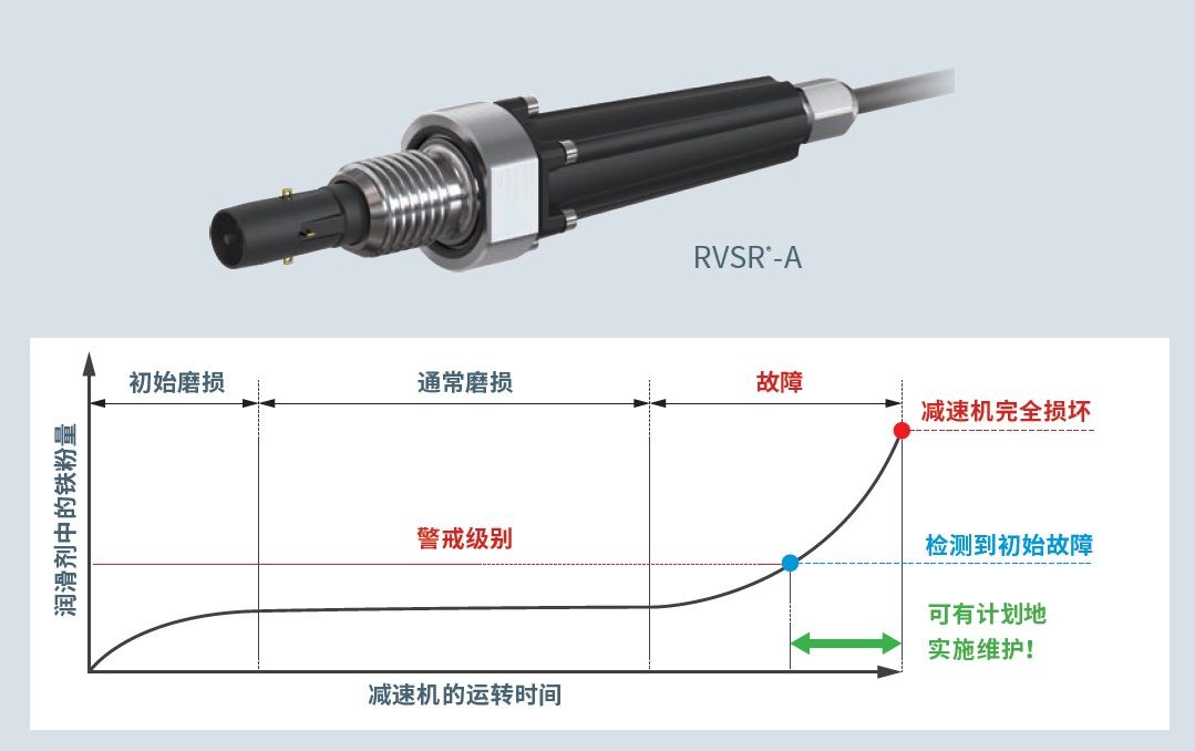 故障检测传感器RVSR®可根据油中铁粉量的变化检测故障,在初期检测出精密减速机RV的故障。可在减速机完全损坏之前有计划地实施维护。为提高制造现场的工作效率、安全性做出贡献!