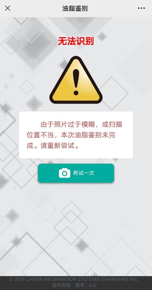 Q3:油脂鉴别结果为“这张照片太模糊或位置不当”?