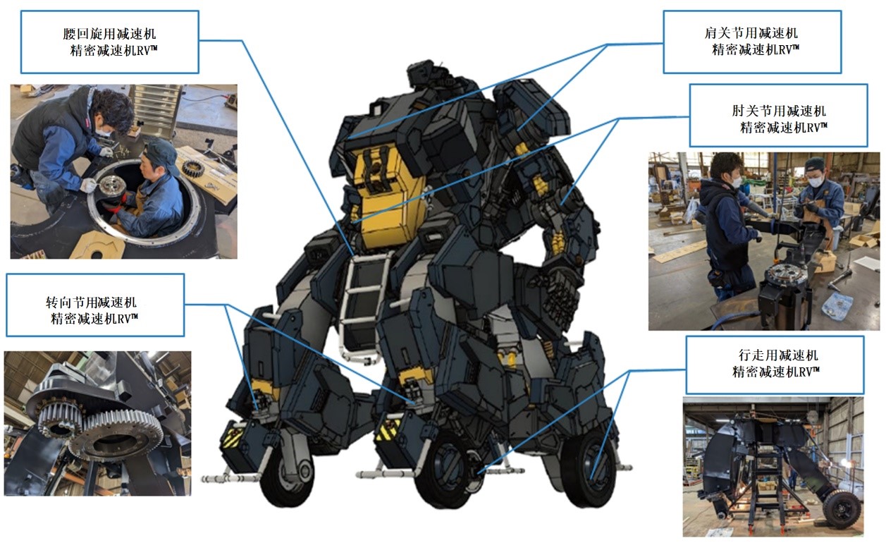 作为本公司核心产品的精密减速器RV,是把电机的旋转运动转换成扭矩,能降低机械本体部分的振动和精密控制的装置,主要被用于大负载的中大型工业机器人的关节处。在“ARCHAX”上,以腰部回旋和行走为主,每个机体搭载9个精密减速器RV,实现其顺畅准确的动作。