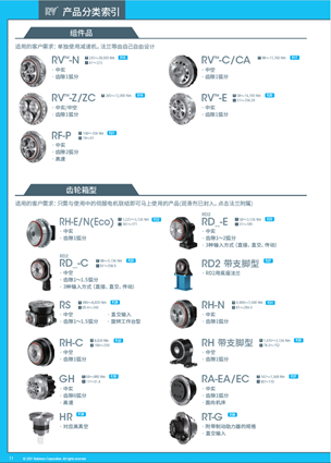 在索引页面新增了产品的“应用分类”、“产品分类”、“产品对照表”三种方式。通过分类与对照,让新用户快速、简便地了解精密减速机RV各类产品的特点及应用场景。在选型时更省心、更省时、更省力。