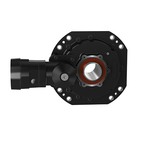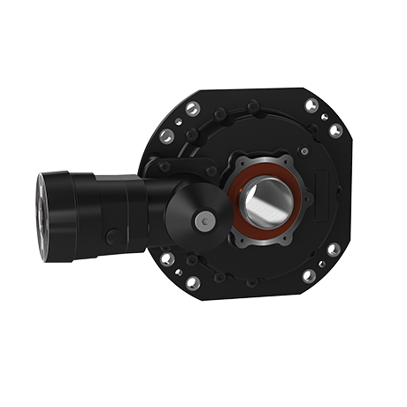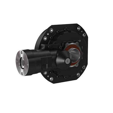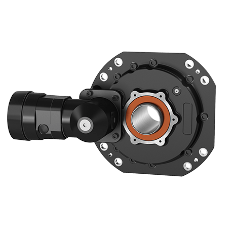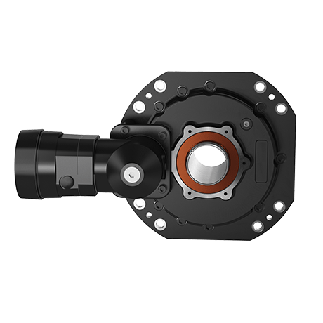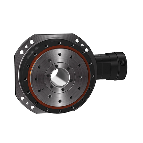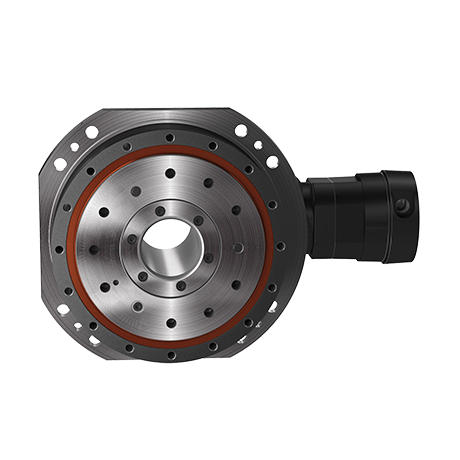 作为RD2系列全新产品的直交输入型齿轮箱。由于是直交输入型,具有使搭载装置轻薄化,在狭窄的空间也可设置的优点。特别是使用在转动台时可以在控制高度的同时确定高精度位置,从而实现底床化。